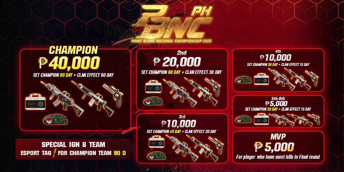 Additional Rules & Requirements IGN Restrictions: Players who have registered cannot change their IGN. Team Composition: 1 team should have 6 members (5 members, 1 reserved/Substitute) Residency Requirement: All players must be residing in the Philippines. ID Requirement: Only a government-issued valid ID is accepted. TINCARD is not allowed. Awards for Winning Teams All team members (including substitutes/reserve players) will receive the designated prizes and items. PB Cash rewards are only for the 5 main players, and substitutes/reserve players will not receive PB Cash.