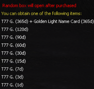 ![]() T77 Gold Focus Box Sale period : February 25 - March 4*, 2026 (*Items will be available for purchase until the start of the server maintenance.) ![]() ![]() *The image shows only some of the items. Players can check all the rewards from the in-game shop. (Items will be available until the server maintenance period.) ============================