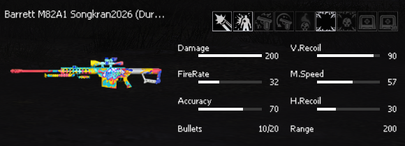 Players must collect 500 Bullet Tokens for guarantee the "Barrett M82A1 Songkran26 (Durability)".