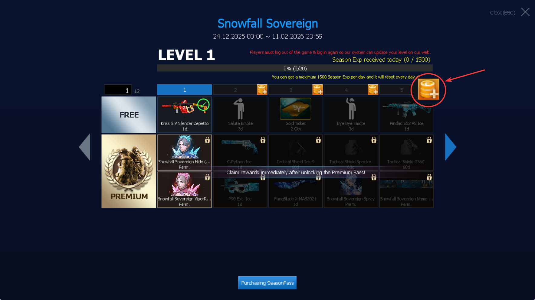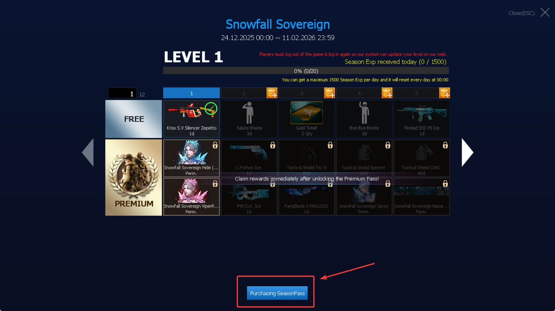 1. To access Season Pass shop, Players are required to unlock/purchase the Premium Season Pass Reward
