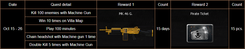 The rewards are exclusive Machine Gun and Pirate Ticket for Collection Event