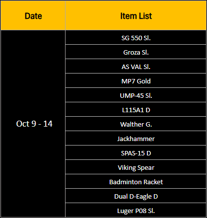 - - Weekend Login & Weapon Boost (October 10 - 13)