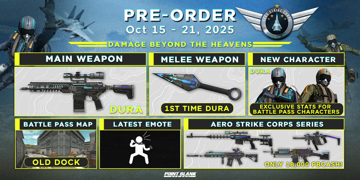 OPEN PRE-ORDER NEW BATTLE PASS! Aero Strike Corps Battle Pass: Night Vision Series Pre-Order Period: October 15th - 21st, 2025 Special Event for Pre-order Premium Pass for more reward! ![]() Price: 18,000 PB CASH Get Free 1,000 Season EXP Up!!! (use to reach Battle Pass Level: 17 Instantly) * Throughout the entire Battle Pass season, the Pre-order right can only be used once. If you possess it more than once or do not use it within that season, this cannot be carried over to the next season and cannot be exchanged for PB Cash. Pre-order instruction 1. The player can pre-order our Battle Pass: Premium through IN-GAME SHOP At SHOP > ITEM > "Feature Item" or "All" Example Image of Pre-Order process. 2. The Player must purchase "Advance Battle Pass Tickets" item with 18,000 PB CASH 3. On October 22nd, 2025. after the maintenance, "Advance Battle Pass Tickets" item will automatically open Premium Slot of The Battle Pass Pre-Order Period: October 15 - 21, 2025