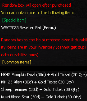 Purchase & Open the Random Box to get the exclusive weapon and also have a chance