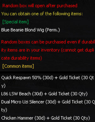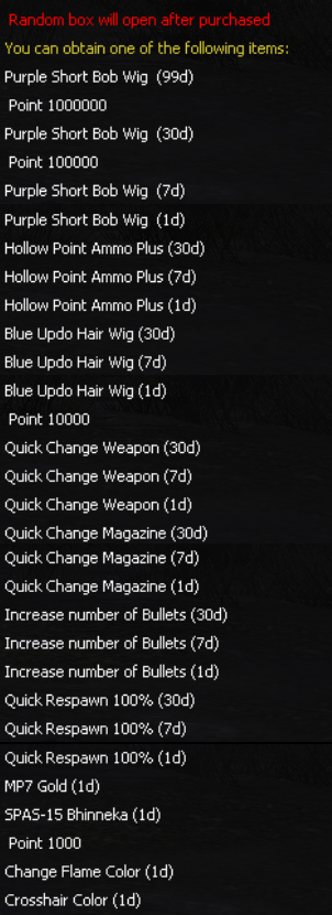 Use the series' main weapon to receive a special EXP & Point bonus of 150% during the event (Bonus period: October 29 - November 4, 2025) ![]() Blue Beanie Blond Wig Dura Box Sale period : October 29 - November 1, 2025. Here your chance to get the exclusive permanent wig for idol character! ![]() ![]() ![]() *The image shows only some of the items. Players can check all the rewards from the in-game shop. (Items will be available until the server maintenance period.) ==================== Randombox Pegasus Series Sale period : October 29 - November 11, 2025. ![]() ![]() *The image shows only some of the items. Players can check all the rewards from the in-game shop. (Items will be available until the server maintenance period.)