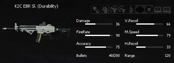Players must collect 300 Bullet Tokens for guarantee the "K2C EBR Sl. (Durability)".
