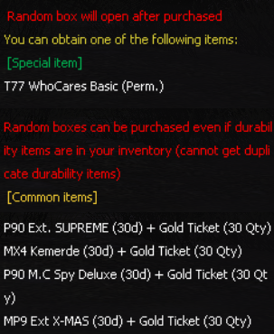 Purchase & Open the Random Box to get the exclusive weapon and also have a chance
