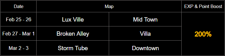 EXP & Point Bonus Table for February 2026