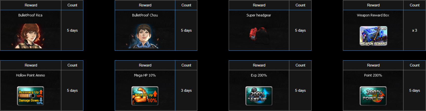 Simply log in and accumulate the required number of online hours during the "Event Period" to receive the following rewards.