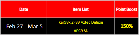 Use the series' main weapon to receive a special EXP & Point bonus of 150% during the event (Bonus period: February 25 - February 3, 2026)