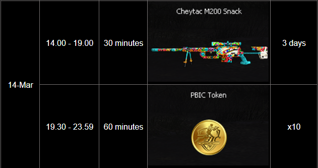 POINT BLANK SERVER MAINTENANCE March 11, 2026 Highlights - International Season Pass: PBIC2026 Shaman now available for everyone until April 15,2026. See more details here. - PBIC Token Shop and Token Collection event are now available! - New PBIC Random Box are now available for getting more PBIC Token and Vote Ticket - New solo matchmaking battle season of the new PBIC 2026 Shaman Season Pass now begin starting today - 12 April - Special March 2026 event with exclusive reward is available today - 24 March New activities New! Point Item sale! (March 13 - 15, 2026) New! New Player Giveaway (March 11 - 24, 2026) New! Solo Match EXP & Point Boost (March 11 - 24, 2026) New! PBIC 2026 Token Weekend Login (March 13 - 29, 2026) New! PBIC 2026 Login Time Spent Event (March 13 - 15, 2026) Ongoing activities New! PBIC 2026 Match Time Spent Event (February 25 - March 24, 2026) New! PBIC 2026 Vote Ticket Daily Login (March 4 - 24, 2026)