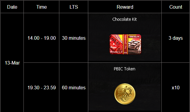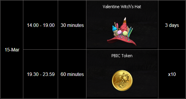 Solo Match EXP & Point Boost Event period: March 13 - 29, 2026. Go all out with this season's Solo Match event! Simply participate in Solo Match mode to receive up to 200% bonus EXP and Points. ![]() =========================== PBIC2026 Token Weekend Login Event Event period: March 13 - 15, 2026. Full rewards for PBIC 2026 fans! Simply log in to the game during the specified dates and times to receive bonus Tokens. ![]() =========================== PBIC 2026 Login Time Spend Event Event period: March 13 - 15, 2026. Simply log in and accumulate the required number of online hours during the "Event Period" to receive the following rewards. ![]() ![]() ![]() =========================== ![]() EXP & Point Bonus Table for March 2026 ![]() ![]() |