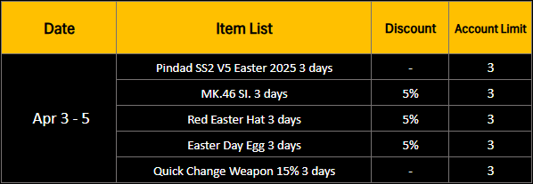 Use main weapon of Easter2026 to receive a special EXP & Point bonus of 150% during the event (Bonus period: April 1 - 7, 2026)