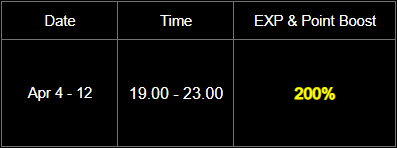 EXP & Point Bonus Table for April 2026