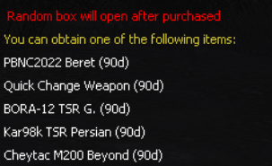 (Obtain from Durability Weapon Random box and In-game Event)
