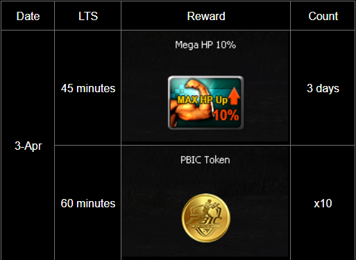 *For this Login Time Spent event, rewards will be calculated based on the total online time recorded during the specified dates.