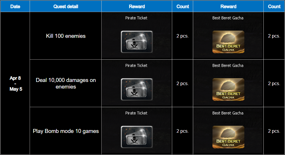 Special Weekly Quests: Unlockable with PB Cash only! Gain extra opportunities to collect Pirate Ticket.