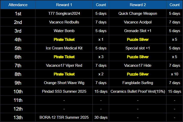 - List of Pirate Ticket and Silver Puzzle reward!
