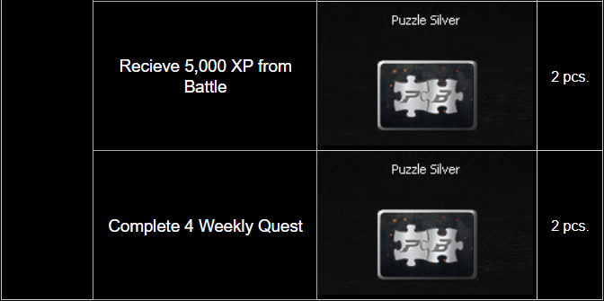 For example, if a player has a total of 35 Silver Puzzle, the player will receive all rewards from the 20 pieces tier up to the 35 pieces tier.