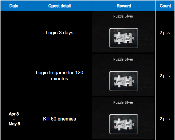 - Special Weekly Quest [ Puzzle Silver ] (April 8 - May 5, 2026)