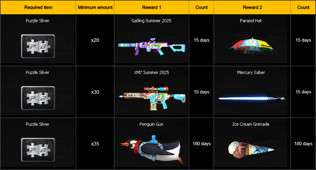 Players who collect the required number of Silver Puzzle will receive special items after the event ends.