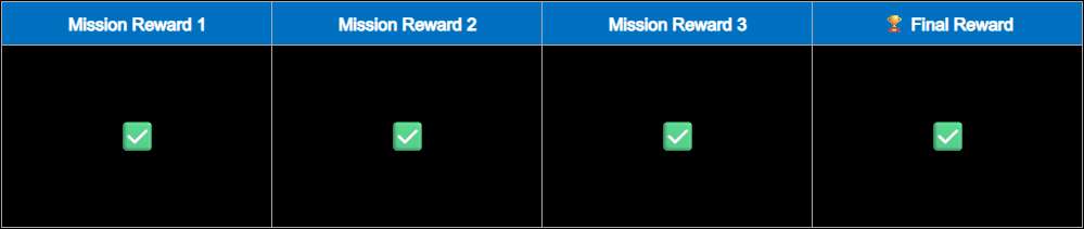 Accompanied by the reward window for each completed mission, with the following details for each section: