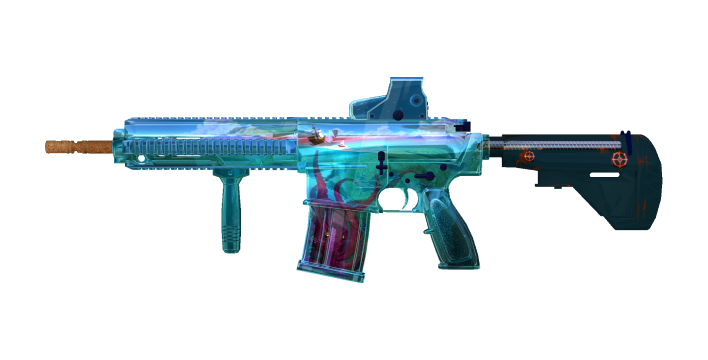 A deep-sea concept skin, designed to evoke the feeling of swimming carefree in the ocean while mysterious creatures lurk unseen in the depths.