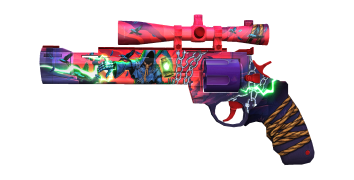 R.B454 SS8M+S Wraith is designed with a reaper theme, featuring a dark, ominous background combined with a motif of a reaper and ravens.