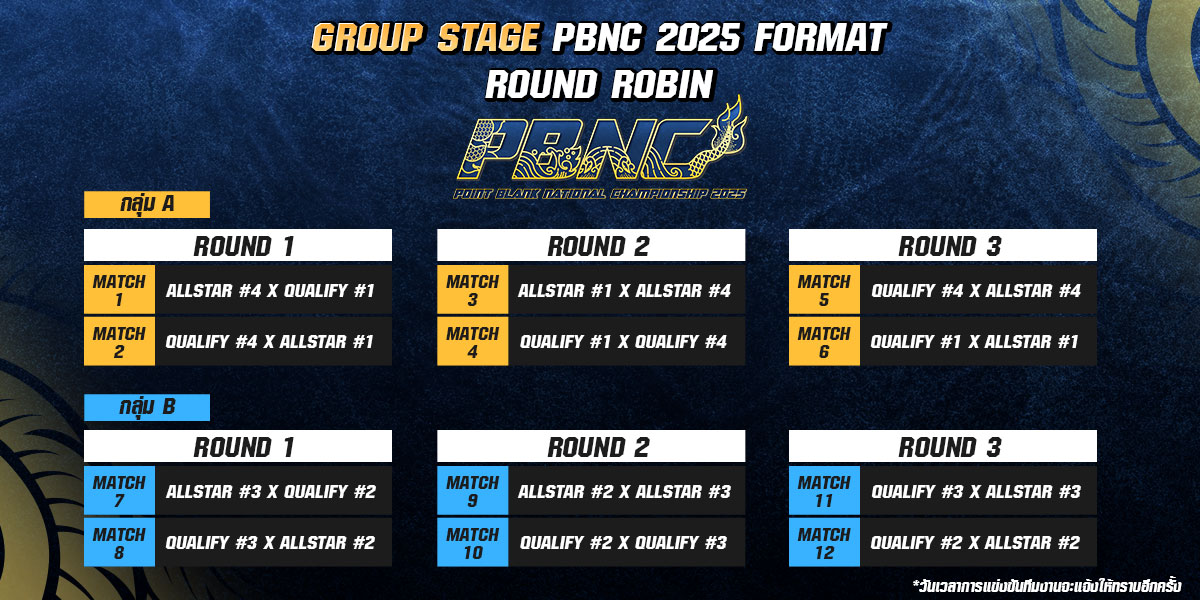 รอบ Group Stage [LIVE] : 31 ตุลาคม 1,7,8 พฤศจิการยน 2568