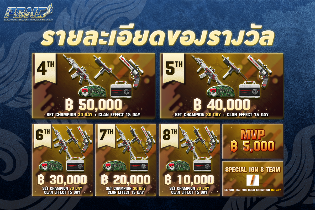 - รางวัลจะได้รับภายใน 30-60 วันทำการ หลังจากส่งเอกสารครบถ้วน (ไม่รวมวันหยุดราชการ) PB Cash จะมอบให้เฉพาะสมาชิก 5 คนตัวจริง ในทีม ตัวสำรองไม่ได้รับ