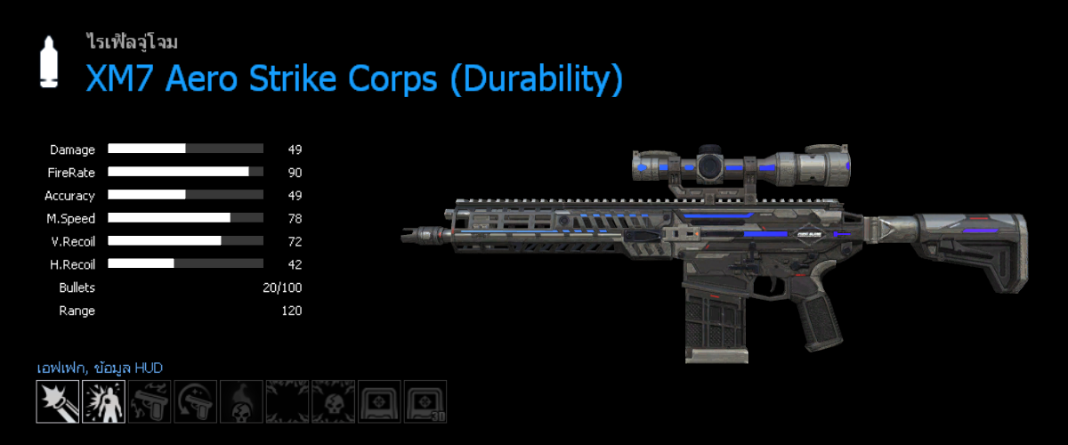 หมายเหตุ - XM7 Aero Strike Corps (ถาวร) และ Kunai Aero Strike Corps (ถาวร) มีอัตราการซ่อม 200 Point ต่อ 1% - ตัวละคร (Aero Strike Corps Caimangrey [Normal] และ Aero Strike Corps Wolf [Normal]) จาก Battle Pass มีอัตราการซ่อม 200 Point ต่อ 1% รายการอาวุธและไอเทมอื่นๆ Battle Pass : Aero Strike Corps ========================= *สงวนสิทธิ์ในการเปลี่ยนแปลงเงื่อนไขและข้อกำหนดโดยไม่แจ้งให้ทราบล่วงหน้า |