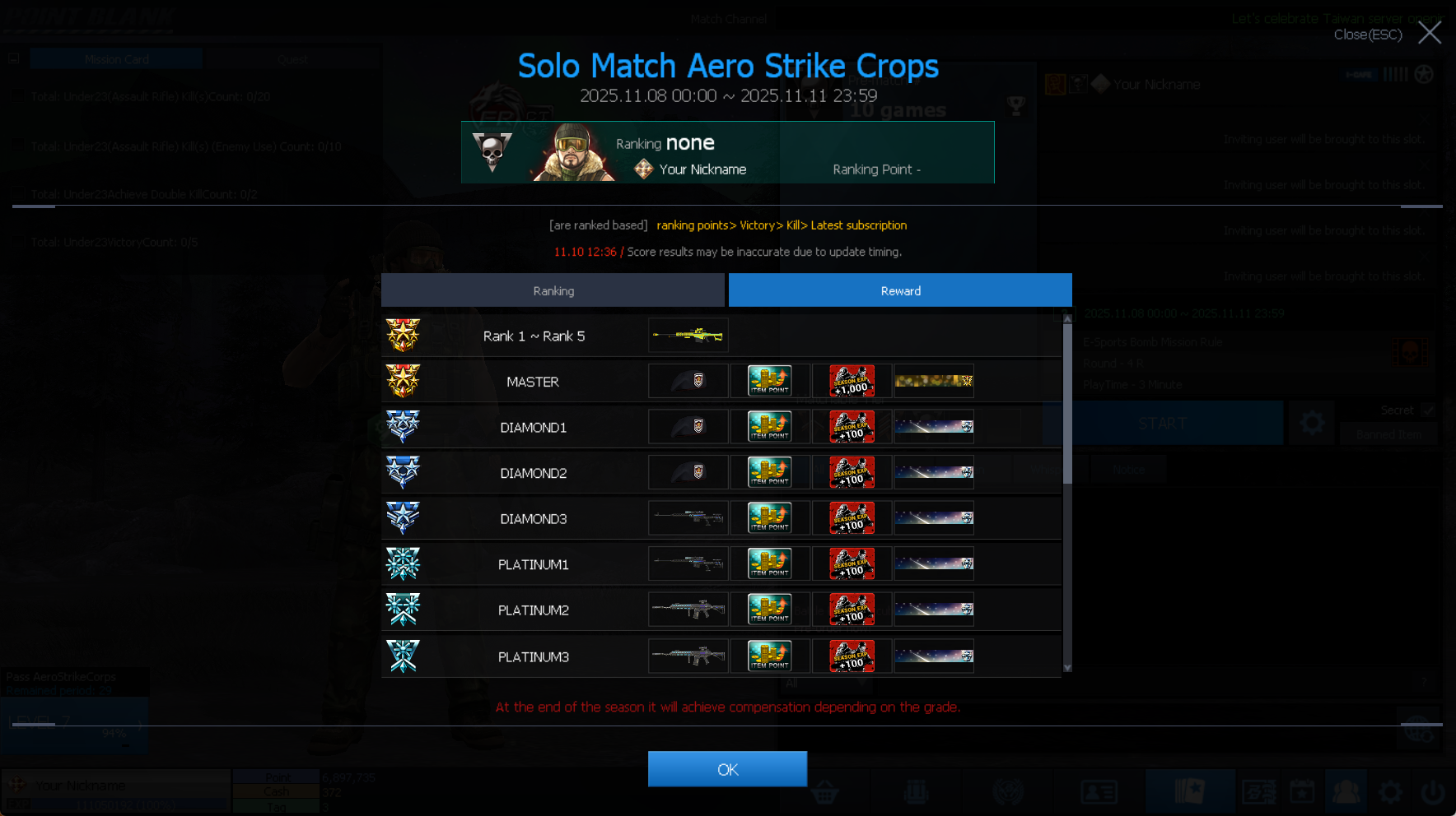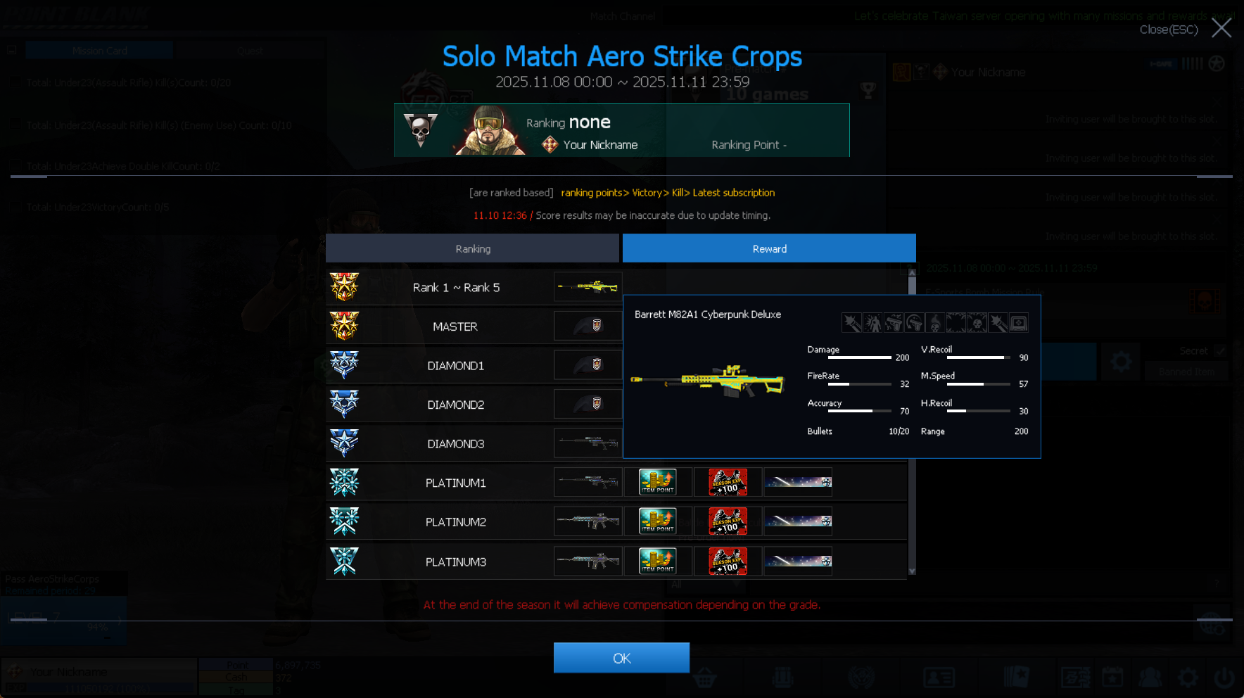 และสามารถตรวจสอบคุณสมบัติของไอเทมของรางวัลในแต่ละ RANK ได้อีกด้วย