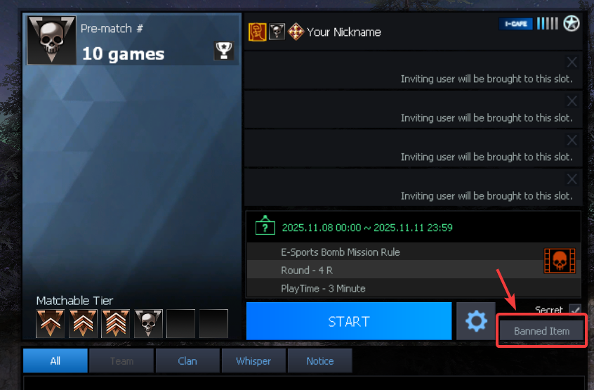 ท่านสามารถดูรายการไอเทมต้องห้ามทั้งหมดได้ที่ หน้าเมนู Match Channel