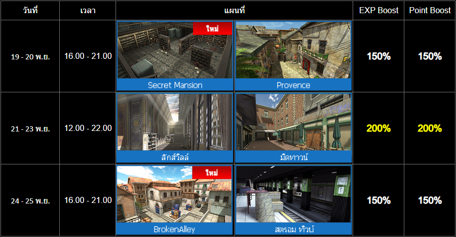 ตารางโบนัส EXP & Point ประจำเดือนพฤศจิกายน 2568