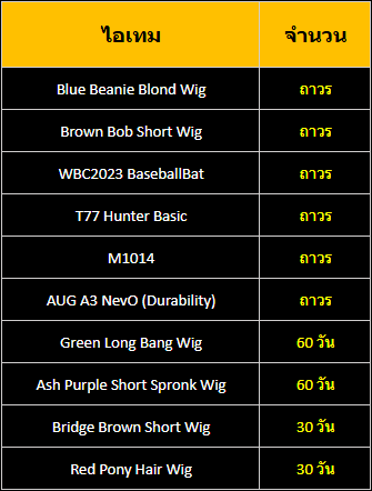รายชื่อไอเทมจากกล่อง 10% Durability Wig Random Box