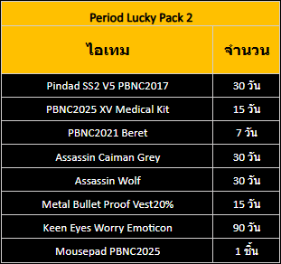 รายละเอียดการซื้อสินค้า Lucky Pack ที่ PBNC Offline Shop