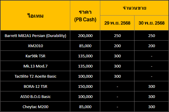 รายการเซ็ตไอเท็มพิเศษใน PB Offline Shop
