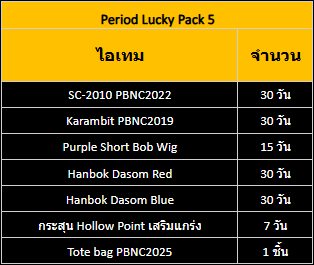 เซ็ตไอเทมถาวร ที่ผู้เล่นมีโอกาสได้รับภายใน Lucky Pack