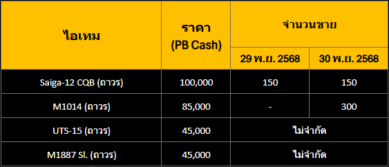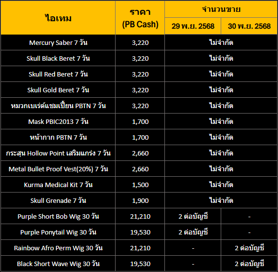 1. สินค้าที่เปิดจำหน่ายจาก PB SHOP ต้องชำระด้วย PB CASH จากบัญชีตัวละครเกม Point Blank ที่ต้องการรับสินค้าเท่านั้น