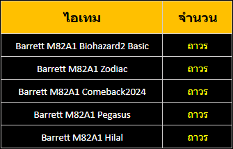 กรณีได้รับปืน Barrett M82A1 ลายเดิมซ้ำอีกครั้ง ผู้เล่นจะได้รับไอเทมชดเชย ส่งเข้าในเกม หลังจบงาน ภายใน 7 วันทำการ