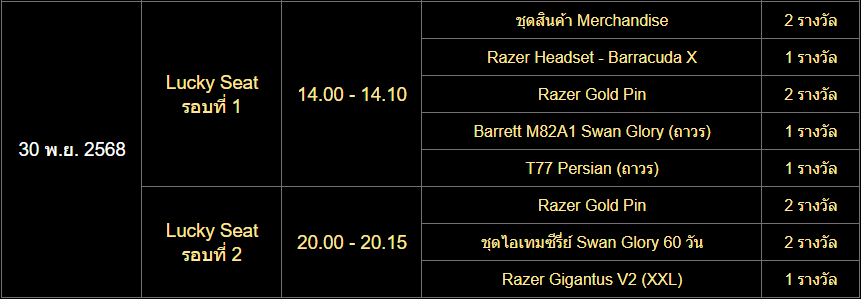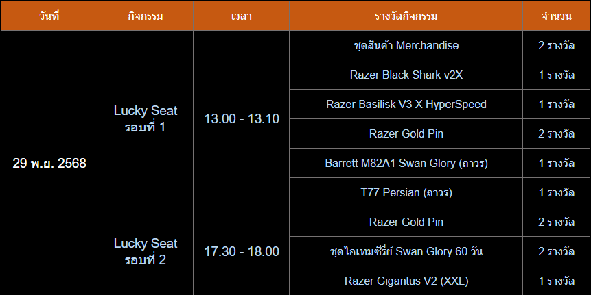กำหนดการและรายละเอียดกิจกรรม Lucky Seat