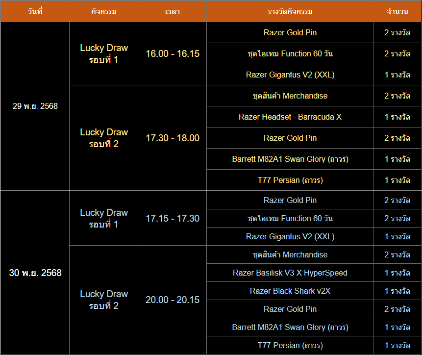 • หมายเหตุ : เวลาดังกล่าวอาจมีการเปลี่ยนแปลงเล็กน้อย เพื่อความเหมาะสมต่อการดำเนินการ แนะนำให้ผู้เล่นติดตามประกาศจากทีมงานอีกครั้ง (หากมี)