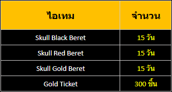 (ไอเท็มชดเชยจะได้รับเพียงครั้งเดียวเท่านั้น กรณีได้รับไอเท็มที่เหมือนกันทั้ง 2 วัน)