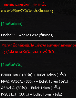 1. * ทุกกล่องสุ่ม Pindad SS3 AoeXe Basic Dura Box จะได้รับ Bullet Token 1 ชิ้