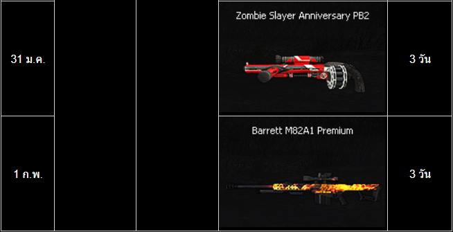 17th Anniversary Special Sale ระยะเวลาขาย 14 - 27 มกราคม 2569 เทศกาลเปิดร้านต้อนรับครบรอบ 17 ปี ให้ผู้เล่นทุกคน โดยเฉพาะผู้เล่นใหม่ได้เตรียมพร้อม เข้าลุยสนามรบใหม่พร้อมกับกิจกรรมพิเศษ ตัวอย่างอาวุธและไอเท็มในโปรโมชั่น!! ระยะเวลาจำหน่าย: 14 - 27 มกราคม 2569 T77 Police 30 วัน (ลดราคา 50% !!!) (จำกัด 1 ครั้ง / บัญชี / ตลอดระยะเวลาจำหน่าย) วันนี้ถึง 27 มกราคมนี้เท่านั้น!!