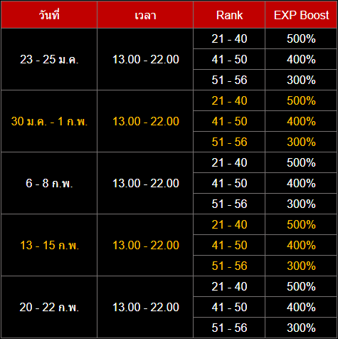 =========================== บูส EXP & Point ตามลำดับยศ ระยะเวลากิจกรรม : 23 มกราคม - 22 กุมภาพันธ์ 2569 เมื่อเล่นเกมในช่วงสุดสัปดาห์ ผู้เล่นตาม Rank ที่กำหนดจะได้รับบูส EXP และ Point เพิ่มเติมสูงสุดถึง 500% ไปเลย ![]() =========================== รางวัลใหญ่พิเศษกิจกรรม 17 ปี เฉพาะผู้เล่นปัจจุบัน (ผู้เล่นปัจจุบัน: ผู้เล่นที่ทำการ Login ระหว่างวันที่ 1 ต.ค. 2568 - 20 ม.ค. 2569 (ก่อนเริ่มกิจกรรม 17th Anniversary เท่านั้น)) รางวัลพิเศษสำหรับผู้เล่นปัจจุบัน สำหรับผู้เล่นที่ออนไลน์ระหว่าง 1 ตุลาคม 2568 - 20 มกราคม 2569 และอยู่ในระดับ Rank 21 - 56 และเก็บสะสม Golden Ticket ครบ 17 ชิ้น จะได้รับไอเทม Zombie Green keychain ถาวร เพิ่มอีก 1 ชิ้น ฟรี!!!