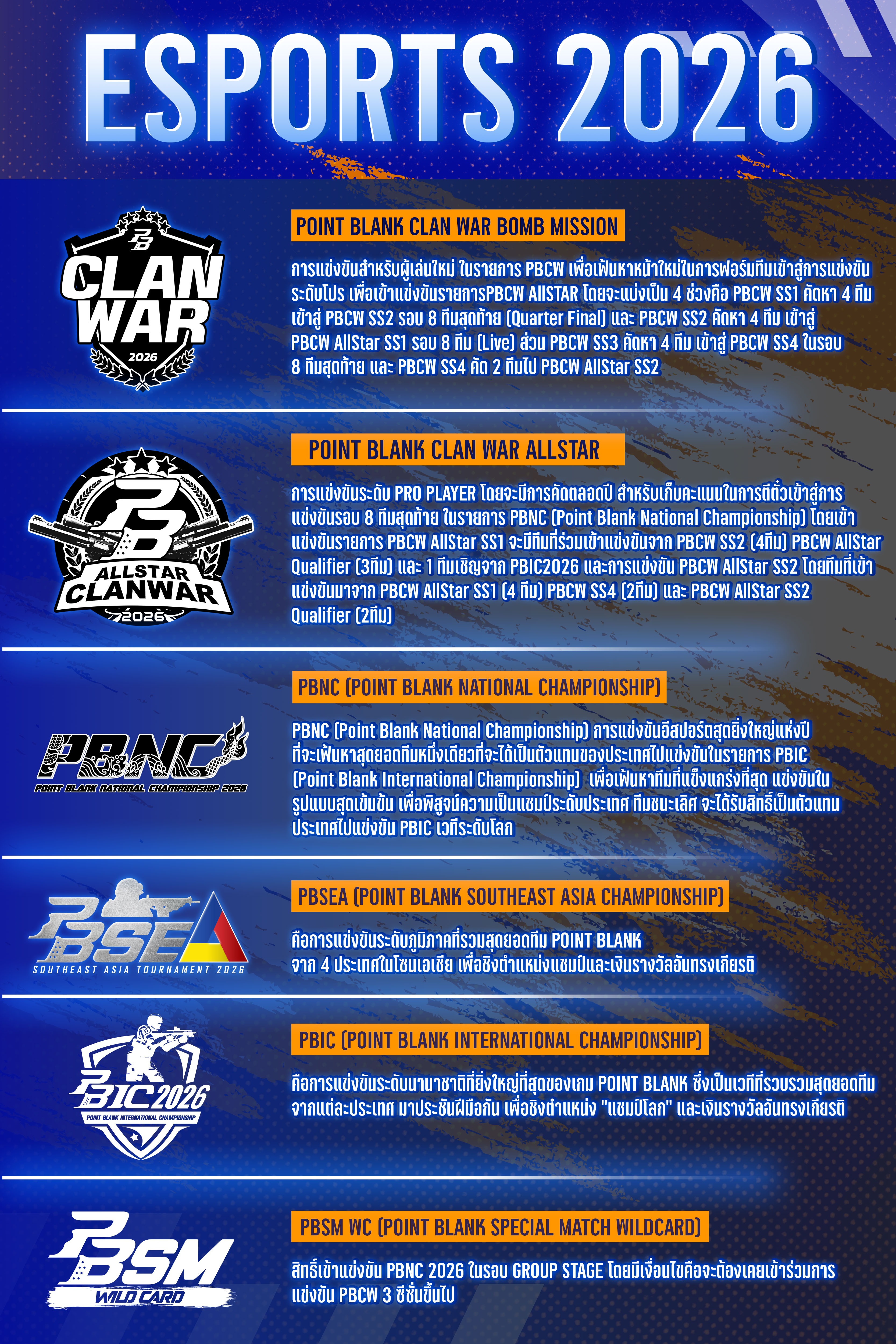 🔥POINT BLANK 2026 TOURNAMENT ROADMAP🔥 เปิดแผนการแข่งขันทัวร์นาเมนต์ตลอดทั้งปี 2026 รองรับผู้เล่นทุกระดับ ทั้งมือสมัครเล่นและมืออาชีพ พร้อมสนามการแข่งขันหลากหลายรูปแบบ ตลอดทั้งปี 🏆 โอกาสพิสูจน์ฝีมือมาถึงแล้ว เตรียมตัวให้พร้อม งานนี้พลาดไม่ได้!