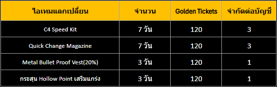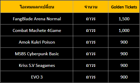 3.ไอเทมถาวรสามารถแลกเข้าไอดีที่มี Gold Ticket เท่านั้น ไม่สามารถโอนย้ายไปยังไอดีอื่นได้