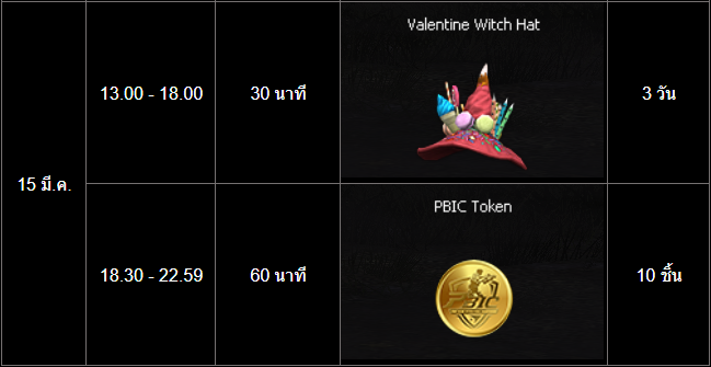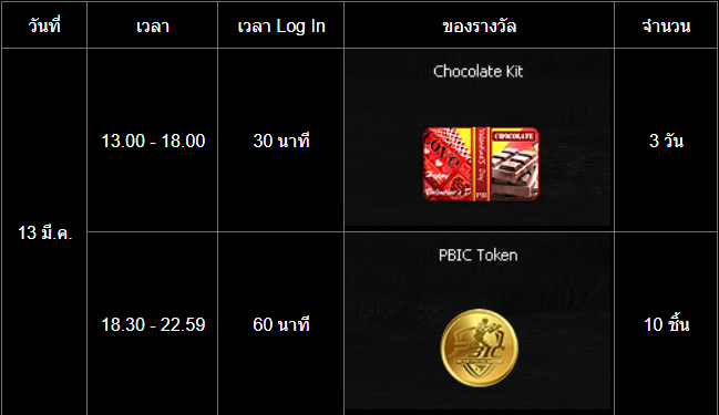 =========================== กิจกรรม นับถอยหลัง PBIC ระยะเวลากิจกรรม : 14 - 22 มีนาคม 2569 แจกหนักจัดเต็มนับถอยหลัง PBIC 2026! เพียงล็อกอินเข้าสู่เกมตามวันกำหนด รับไอเทมสุดพิเศษเหล่าไปเลย!