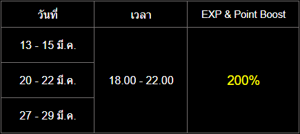 ตารางโบนัส EXP & Point ประจำเดือนมีนาคม 2569
